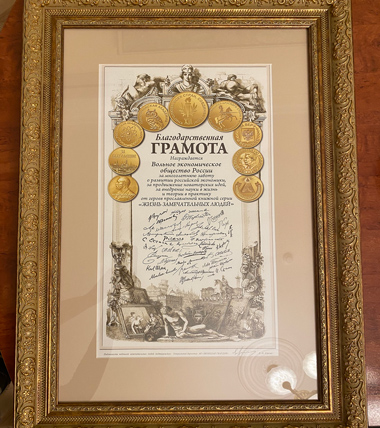 Российское историческое общество высоко оценивает усилия Вольного экономического общества в деле просвещения и поддержки актуальных научных исследований.