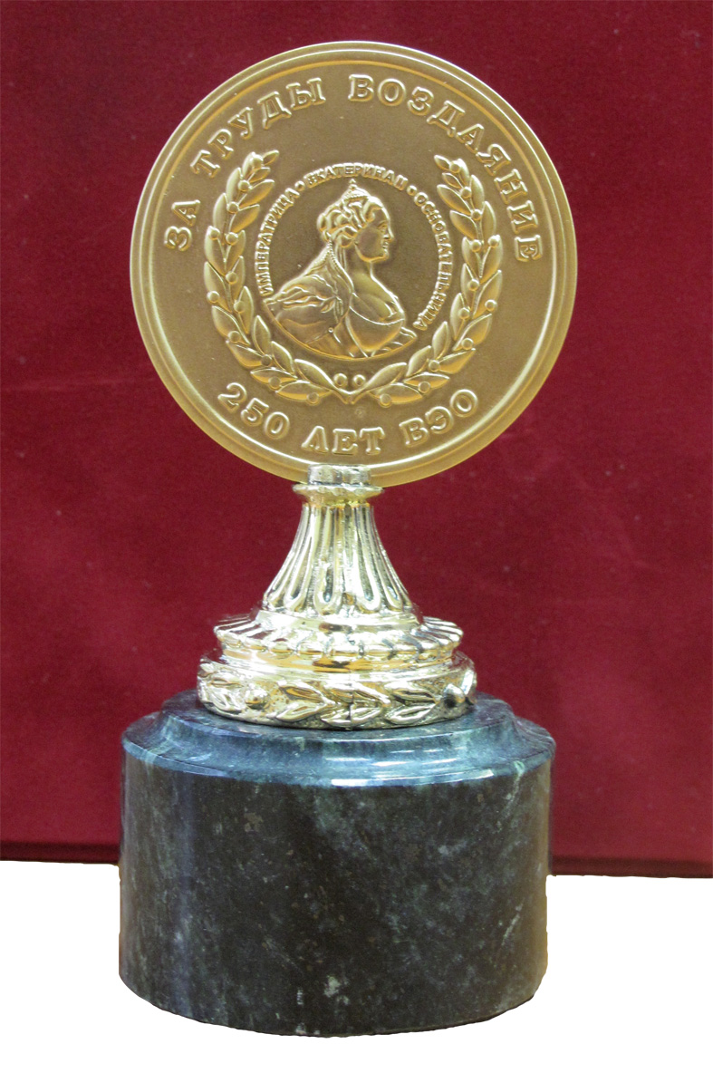 В современной истории: первое награждение Большой Золотой медалью состоялось в 2005 году на Съезде, посвященном 240-летию ВЭО России.